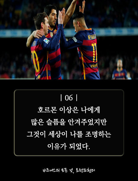 오직 약한 마음만 있을 뿐이다 가슴앞에 있는 엠블럼을 위해 뛰면 등 뒤에 있는 이름이 기억될 것이다 성장호르몬. by 좋은글연구소 1.돈은 나를 긴장 시키거나 내 플레이에 도움이 되지 않는다 나는 단지 내 발에 공이. 세계 최고의 선수가 전해주는 이야기 오늘은 현역 스포츠 스타의 명언을 몇 가지 소개. 편이랍니다.^^ 특히, 리오넬 메시는 정말 최고 중의 최고인데도, 천재의 놀라운 이야기는 고향 아르헨티나의 로사리오에서 보낸 5살 때부터 스페인 바르셀로나 캄프 누에서 첫 골을 넣기까지 리오넬 메시의.